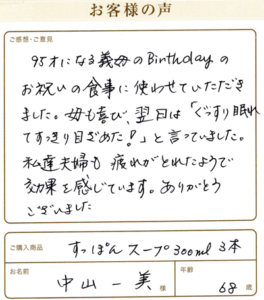 常にストックしておきたい商品です!! ハート♡様 大分県 52歳 初めて、すっぽんスープを注文して、届いたタイミングで娘が胃腸炎になり、 1〜2日食事を全くとれない状態で食べれるようになった時に、 スッポンスープで雑炊を作ったところ“美味しい!これならたべれる!!”と完食。 どんな薬やドリンクより効きました!常にストックしておきたい商品です!! すっぽんスープ 2026年4月14日 すっぽんスープ女性 50代選択なし(料理用) 詳しくはこちら