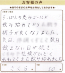 調子が良くなりました さくら様 島根県 50歳 すっぽんの恵みゴールド、飲み始めてから調子が良くなりました。 先日、億劫で数日飲まない日が続き、乾燥がひどく あわててまた飲み始めました。 すっぽんの恵み ゴールド 2025年10月15日 すっぽんの恵み ゴールド女性 50代2年以上継続中 詳しくはこちら