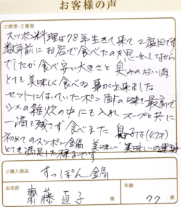 化粧ののりが良いと思います 藤井幸子様 島根県 72歳 定期的にとり寄せしています。 肌は化粧ののりが良いと思います。 すっぽん鍋 2025年10月6日 すっぽん鍋女性 70代以上選択なし(料理用) 詳しくはこちら